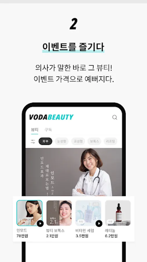 Through the beauty app Boda Beauty, check out event information combined with each hospital's signature plastic surgery/skin treatment products, such as double eyelid surgery, rhinoplasty, Ulthera & Inmode Lifting, etc.