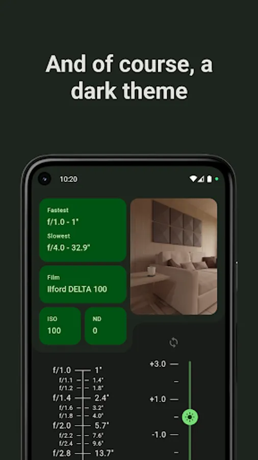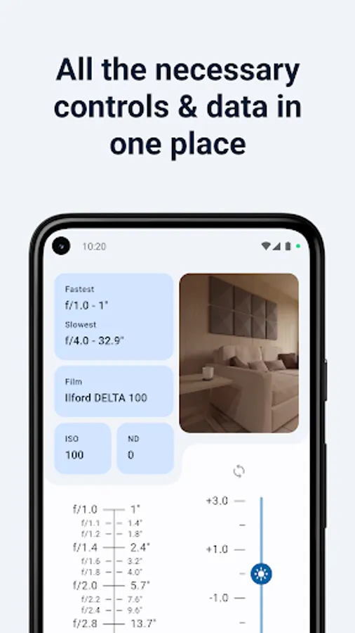 The user interface matches every single detail of the material design guidelines to ensure Lightmeter is an eye candy for you.