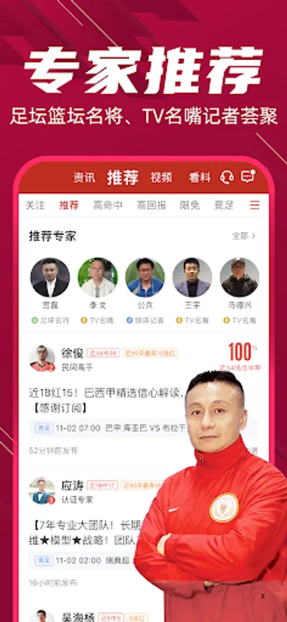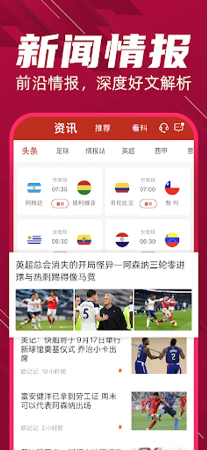 The professional database covers more than 300 football and basketball matches around the world, including the Premier League, La Liga, Bundesliga, Ligue 1, Serie A, NBA, and CBA. Before the game, the dynamic information of the team players and the analysis of the opinions of industry experts are collected, so that you can have a good idea of the results of each game.