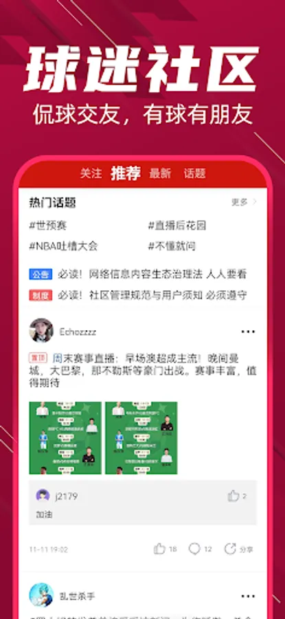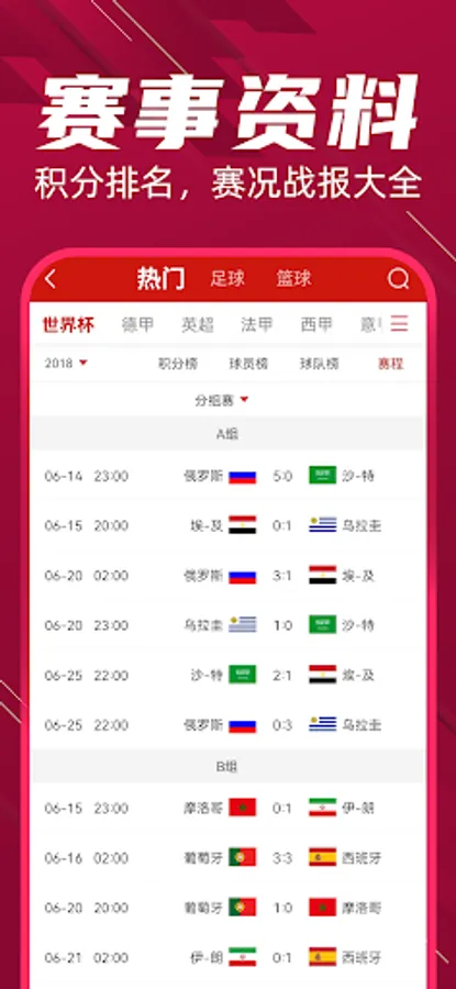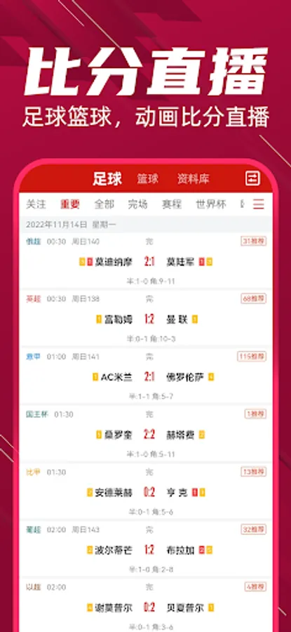 Covering live video broadcasts, live animations, live scores and video highlights of football and basketball matches of various groups.