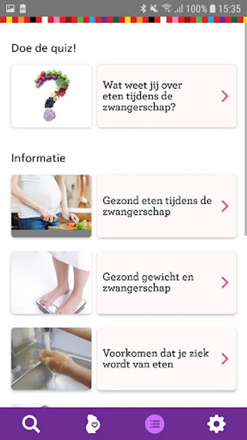 The information you receive comes from a reliable and non-commercial source; the Nutrition Center. All information in the app comes from the latest scientific insights about nutrition and pregnancy and is carefully weighed.