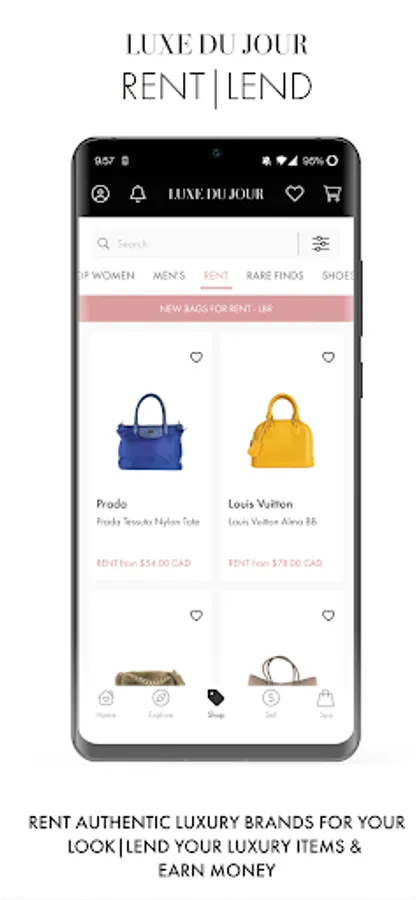 - Explorers can browse the possibilities of bags that our clients have and get notified when they come in for sale or rental