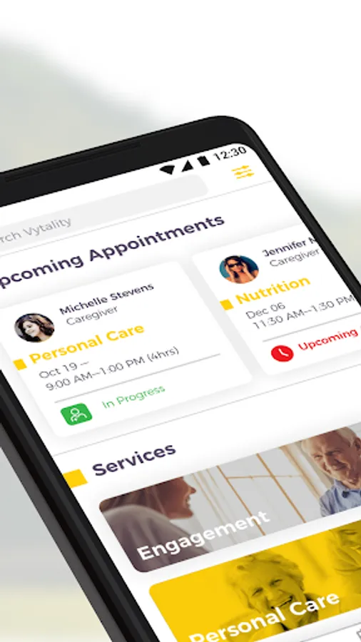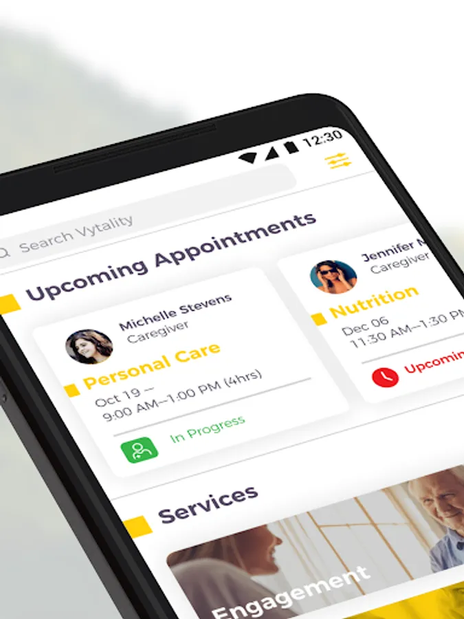 The Vytality app let's you order, track and pay for home care services quickly and easily. Other features included