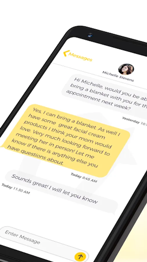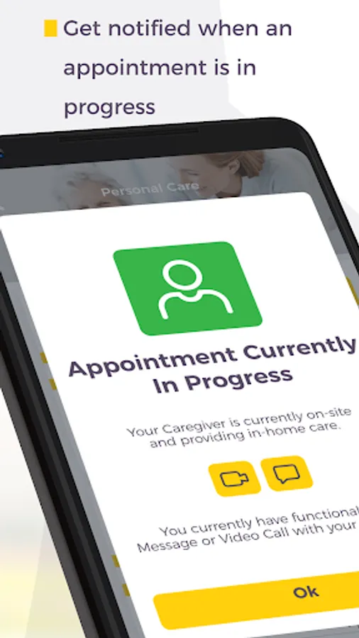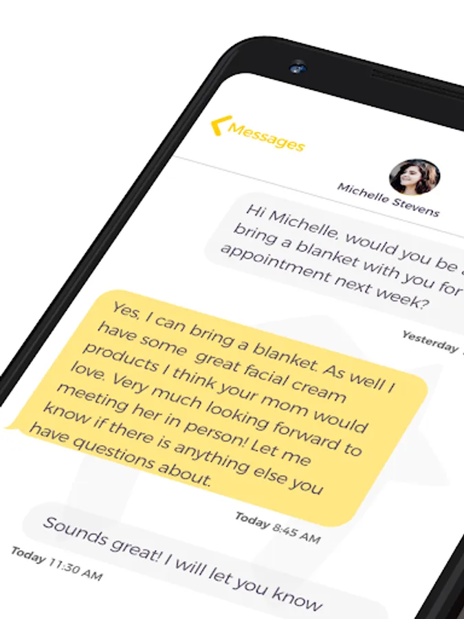 *Message and video chat with a caregiver during the appointment time - a great feature for clients who request care for aging parents, grandparents or family members with healthcare needs