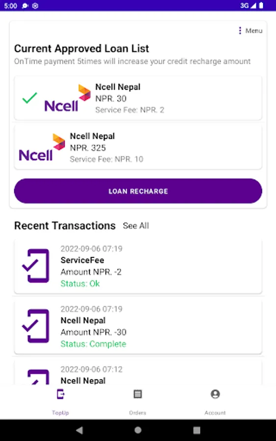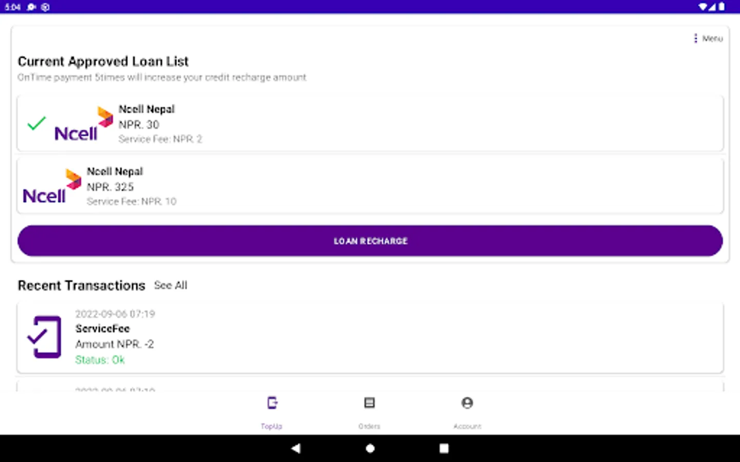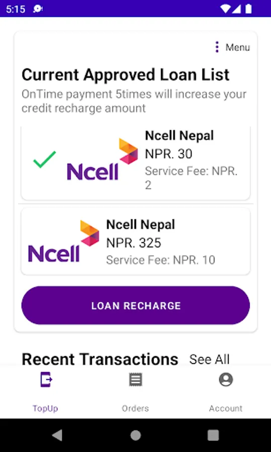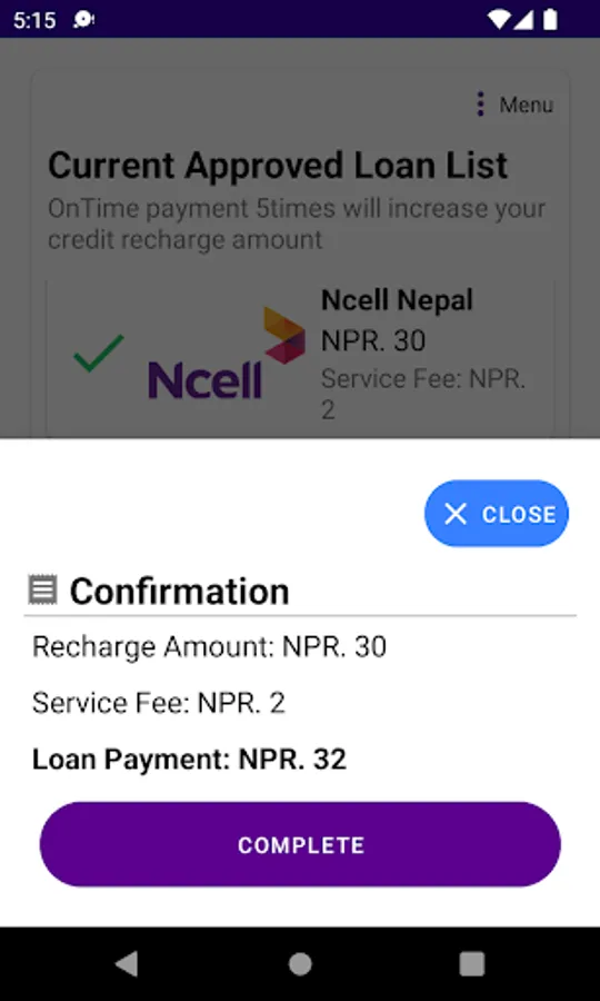 vochare is a loan recharge providing service company powered by voger Technologies Pvt.Ltd is situated in Lalitpur, Nepal. Our service is only available in Nepal as of now. We support the telecom service based in Nepal NTC (Nepal Telecom), Ncell, and Smarttel. We give mobile recharge loans in 45seconds. Recharge Today Pay Later. Paying a recharge loan 5 Ontimes payments will increase the credit limit.