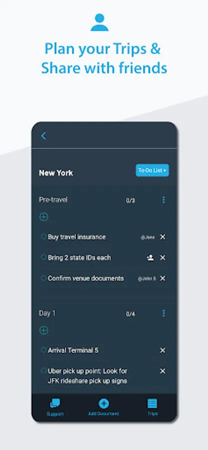 ■ Inside your trips, create to-do lists to prepare a packing list or plan all tasks needed to be accomplished before departure