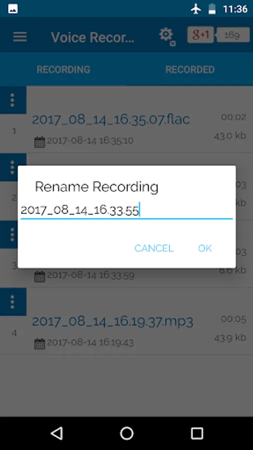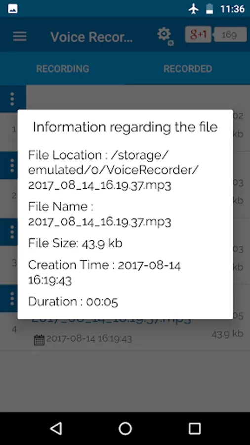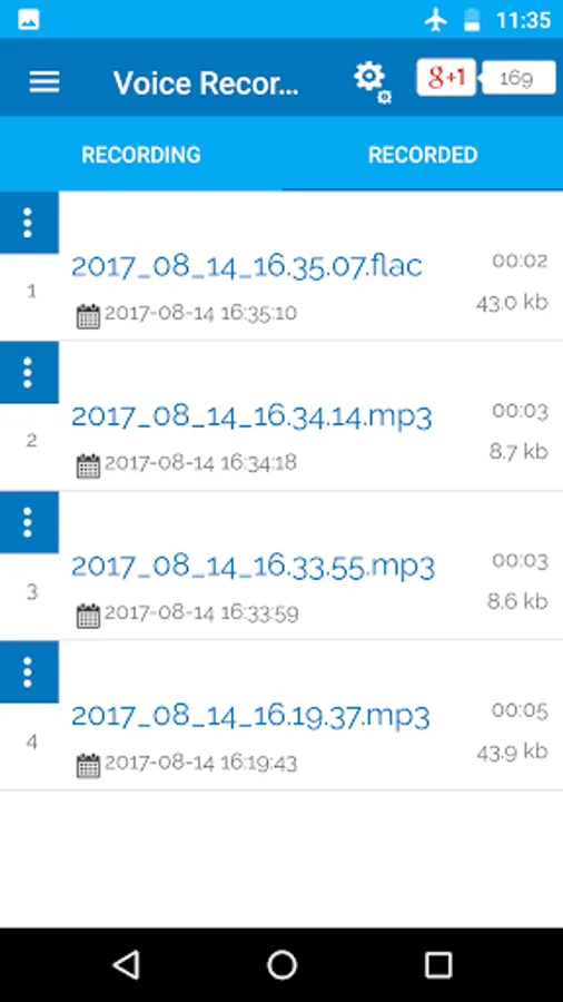 You can use our recording app for daily life and other tasks like voice notes and memos, business meetings, interviews, lectures, speeches, concerts or other things. You can check time of recording and size simultaneously while recording a sound.