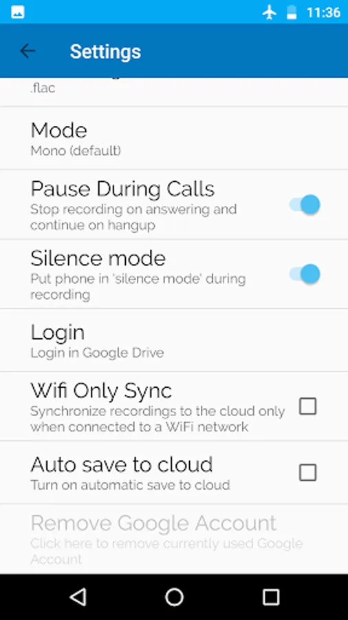 • Blinking LED notification during recording and playing when screen is off (for devices with notification LED)