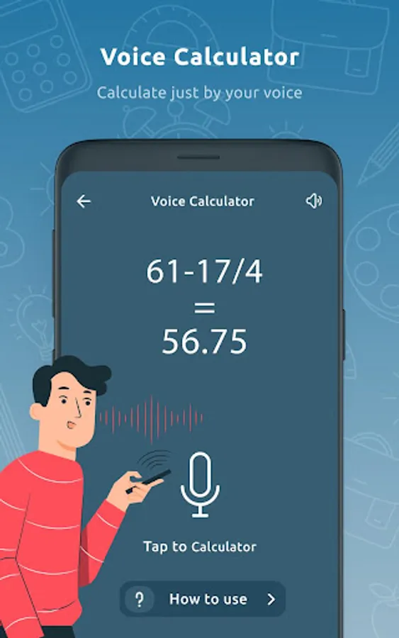 Voice calculator is the most basic need of life, probably for working people, engineering students, teachers, clerical work & for other such purposes as carpenters in shops markets are calculated on daily basis. This app has a simple & easy-to-use interface that makes it possible for you to use it as a scientific calculator, bill calculator, financial calculator, digital calculator/simplified calculator. This interactive calculator with multi-calculator features will give you results for all kinds of calculations in a matter of seconds.