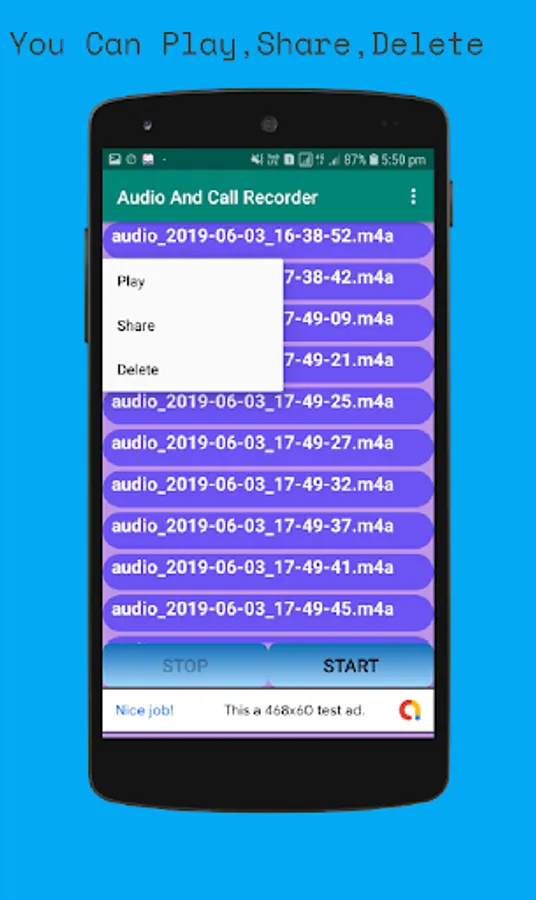 *have delete function, share function (via email, sms, mms, facebook, whatsapp, dropbox, etc.), view detail information