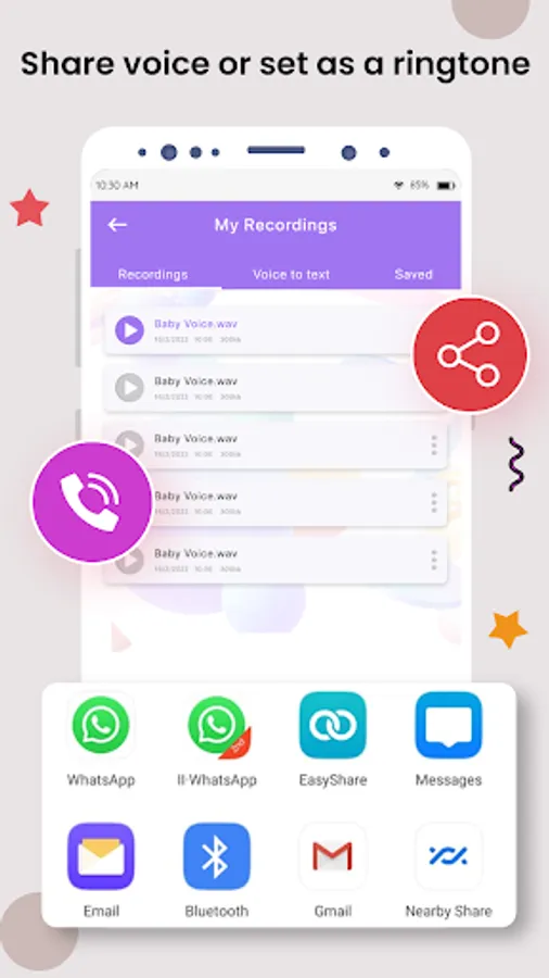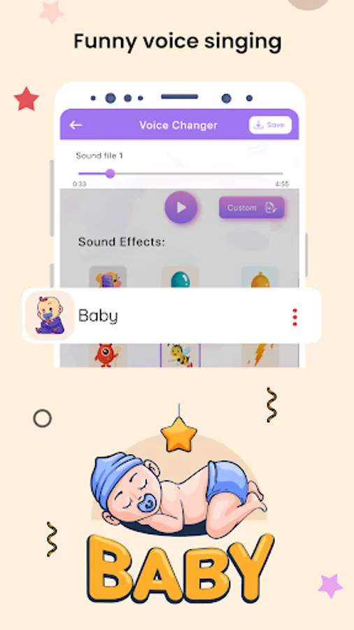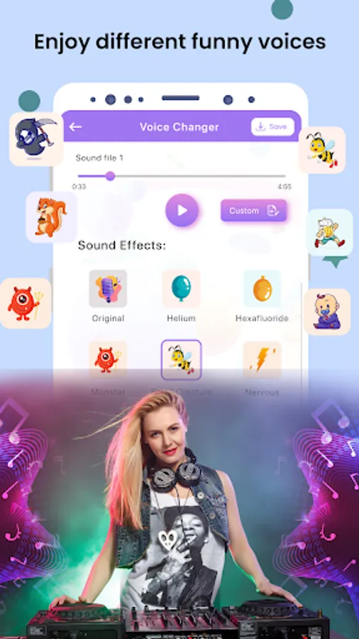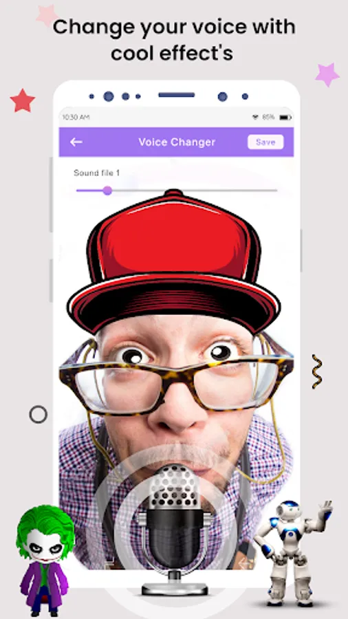 Record audio and be a voice editor by customizing audio effects and enjoy! Make the best funny voice memos by virtue of this unique celebrity voice changer, prank your friends with funny sound effects. Just record voice any time and this voice changer with effects will provide you really crazy and joyful voice mod.