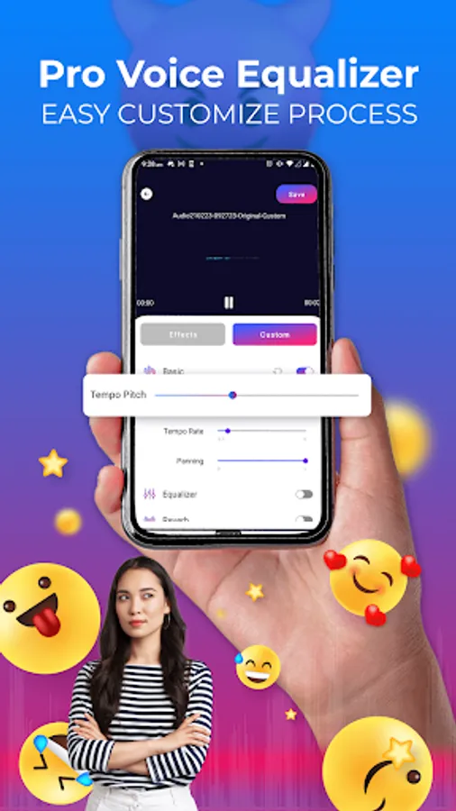 Blindfold your eyes and pick, any random voice effects will satisfy you! You might enjoy female voice changer- changing voice male to female, or a voice editor echo like talking in a cave, or change your voice like walking into no signal area. Realistic situation not your type? How about scary voice changer: Zombie voice, alien voice, clown voice,... Or celebrity voice is your favorite: Michael Jackson voice change and many more celebrity voice. Anime characters’ voice effects will be unlocked anytime soon. Don’t miss the chance to be the first to try them out on our voice changer app!