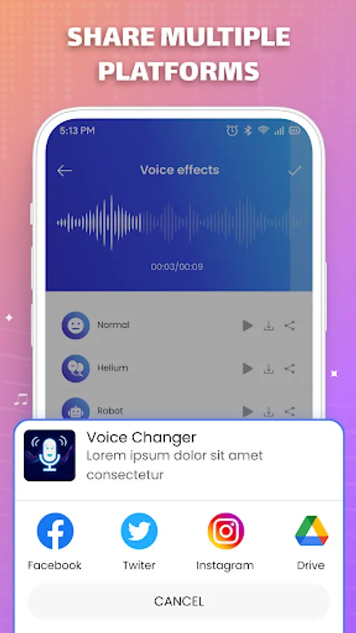 π₯ Share voice recordings to multiple platforms: Spread your unique audio creations across multiple platforms with easy-to-use sharing. π