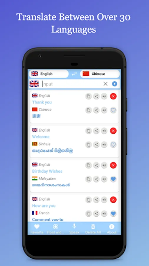 Translate between over 30 languages by typing, speaking, pronouncing.