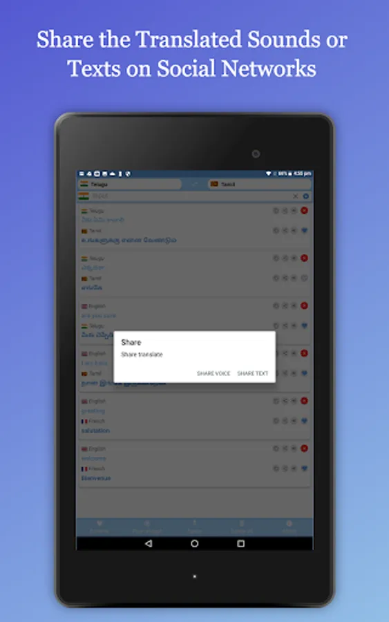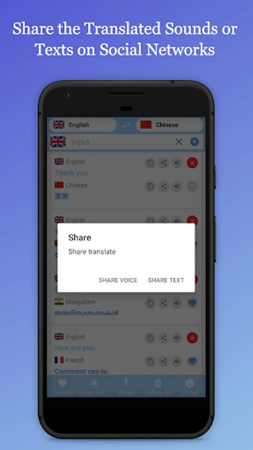 You can share the sounds or translated texts with your friends on your social networks.