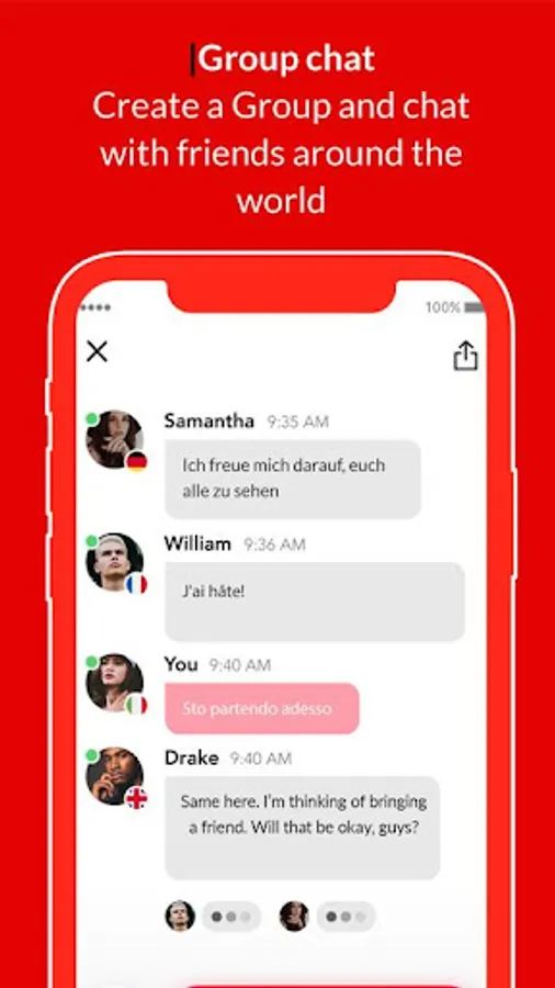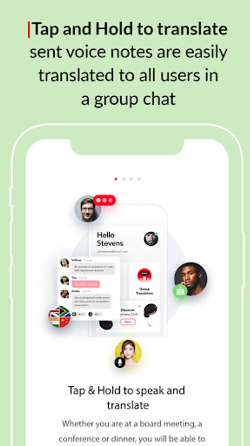 MyJuno can translate multi-lingual text and voice chat between 2 people and up to 300 people in one group. The 30+ languages include for instance English, Chinese, French, German, Spanish, Italian, Arabic, Russian. In total that’s more than 660 cross-language possibilities at the tap of a finger!