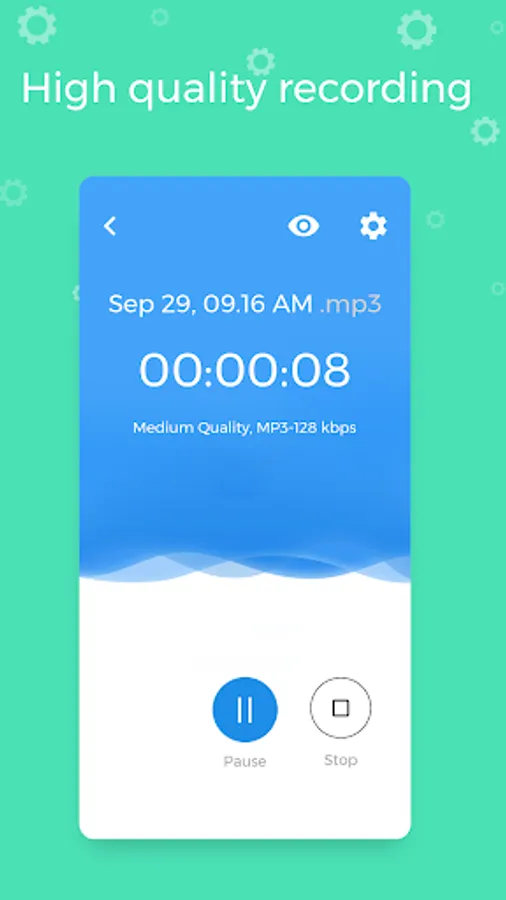Voice is recorded in very high quality. You can also share recordings with your friends.