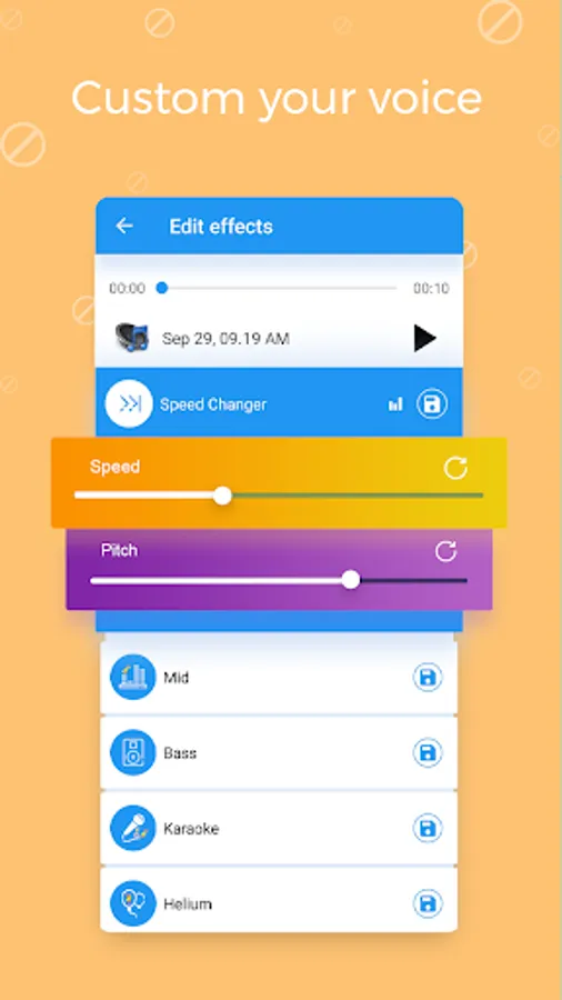 π Record and change your voice directly. Save the recording file with high-quality sound.