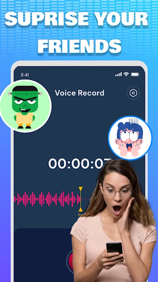 Pretend to be your favorite character and send your changed voice through your favorite chat app (WhatsApp, Instagram, LINE, etc.) to surprise your friends.