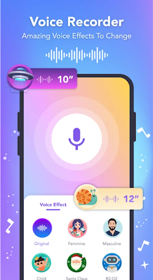 π Voice recording or built-in special effects let you change voice effects instantly.