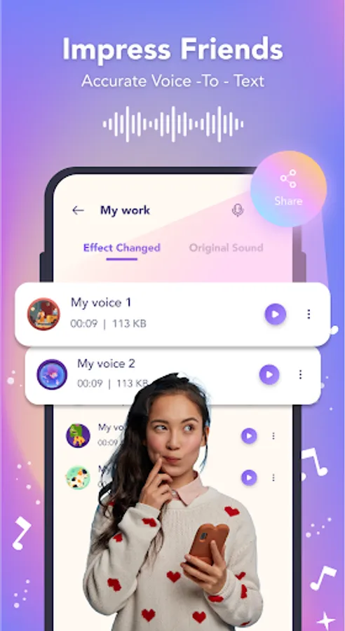 After you have perfect voice conversion, you can set it as your ringtone or send it to your friends, they will be surprised and impressed with how special you are.