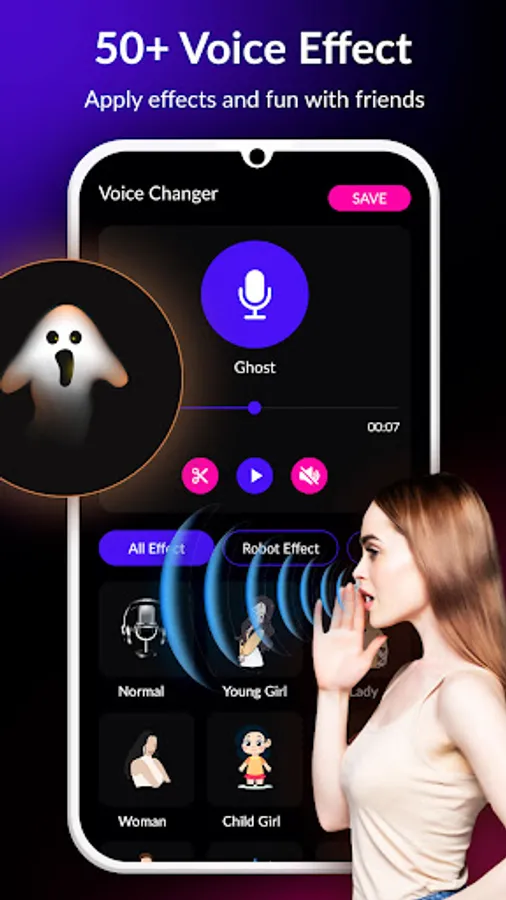 Then awaz kaise badle with Voice Changer AI Audio effects? The Voice Changer AI Audio Effects are what you are looking for. The audio voice changer changes the male voice to a female voice by the voice changer girl effects. That's now you can prank call with a fake voice to anyone by recording a great voice anywhere and converting in voice into a voice changer.