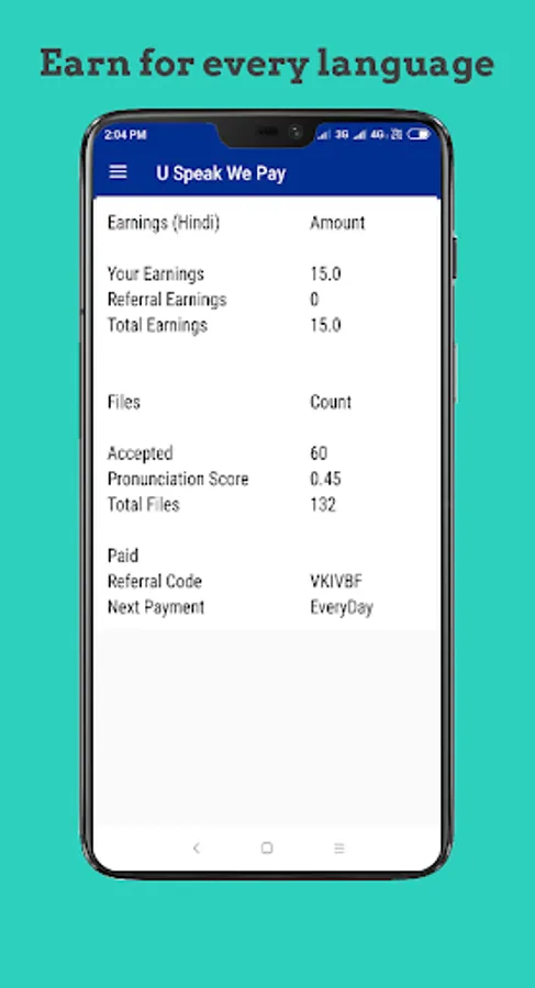 'U Speak we Pay' as the title suggests is an app where you get paid for speaking. Just speak the sentences as they appear in the app and make money by working from home. That's how easy it is!! Guess what? We'll even pay you for your referrals as well.