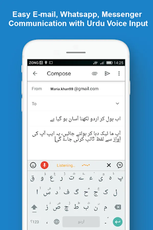 The primary feature of Voice keyboard app is the Pak urdu voice typing feature. With this feature, all a user of this voice urdu keyboard has to do is to speak in urdu language and the converts Urdu input into text. In this simple way you can give urdu voice input without using the language input typing keyboard.
