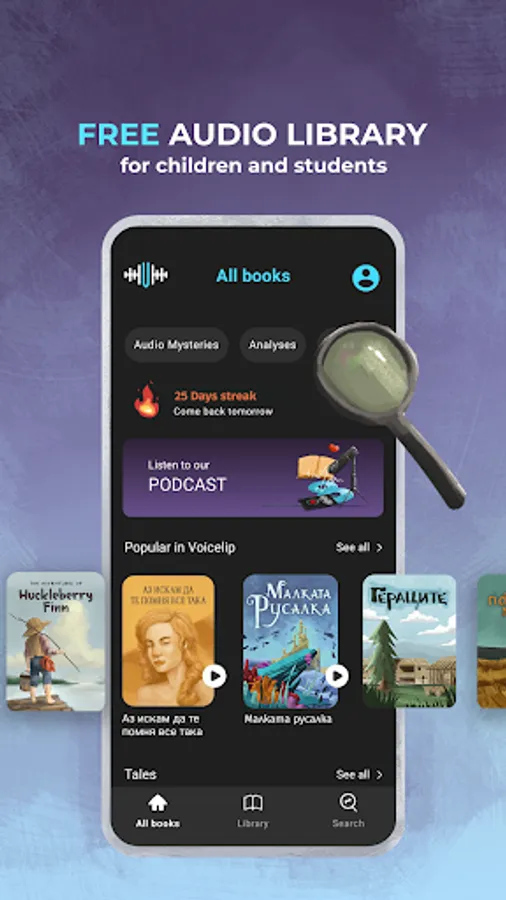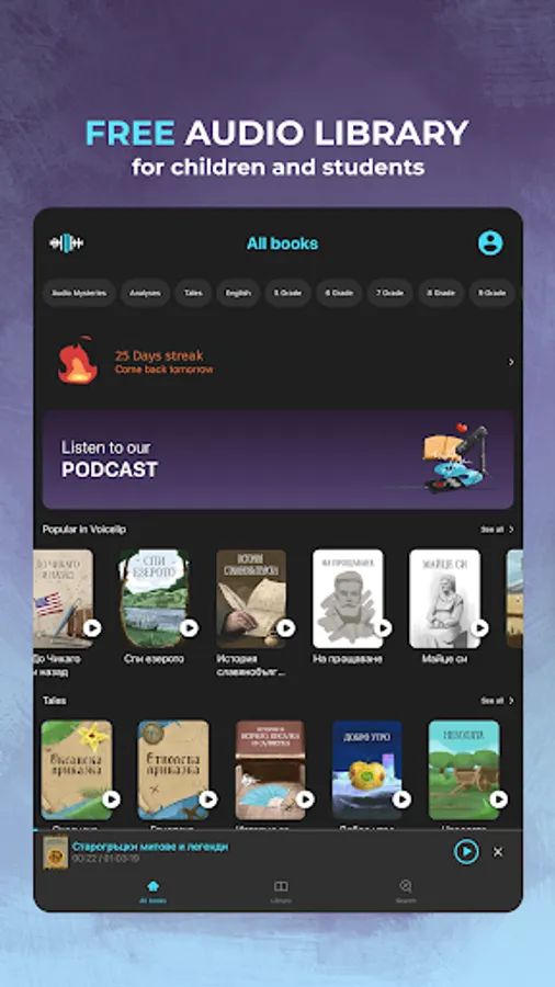 Voicelip is the first audio library made specifically for kids and students, and it turns listening into an inspiring experience.