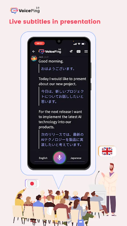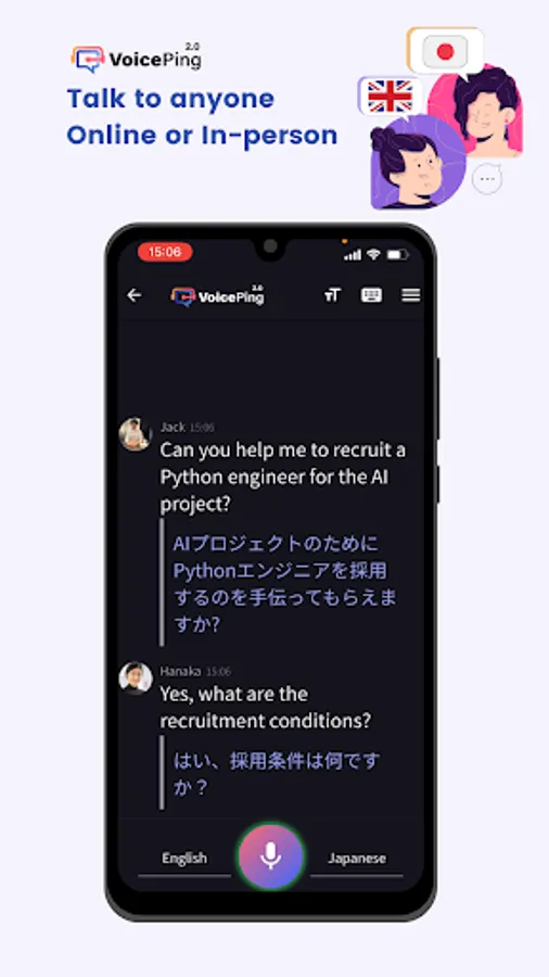 VoicePing Real-time Voice Translation is fast and reliable. Allow you to break the language barrier in online meetings and in-person conversation