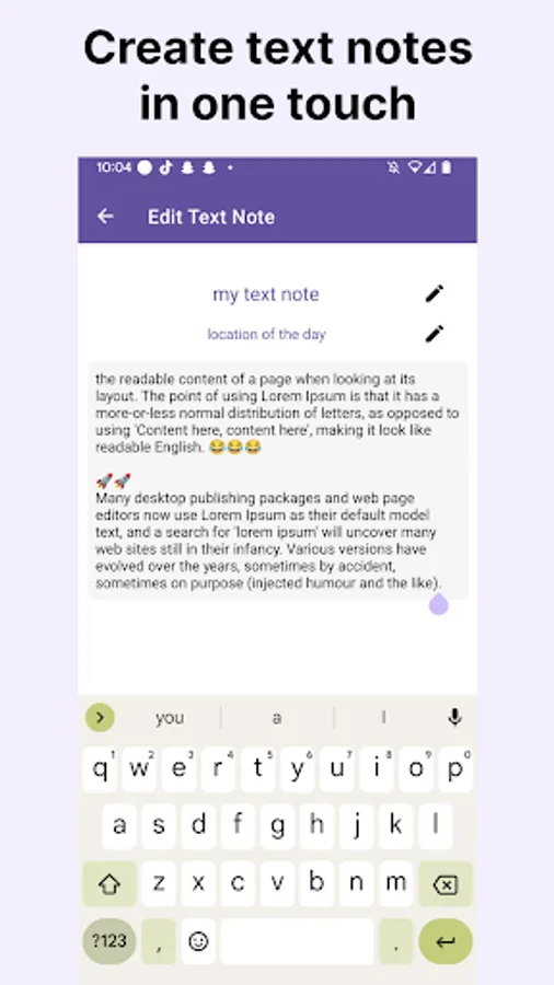 - Easy create text notes , you can use this feature as notebook, reminders, to do lists, and much more