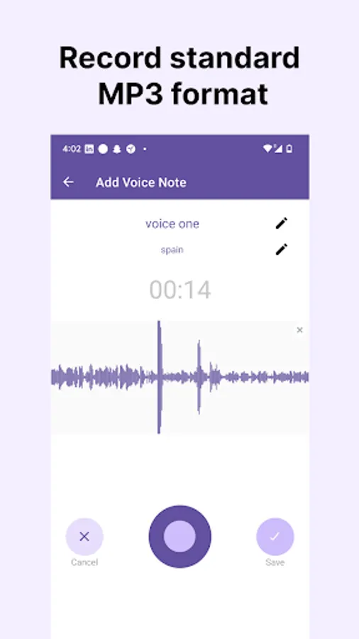 Voice Recorder & Voice Notes Mp3 recorder will turn your phone into a High quality audio recorder with the facility to record industry standard Mp3 format. Avoid losing important information and create notes during and after calls using our app.