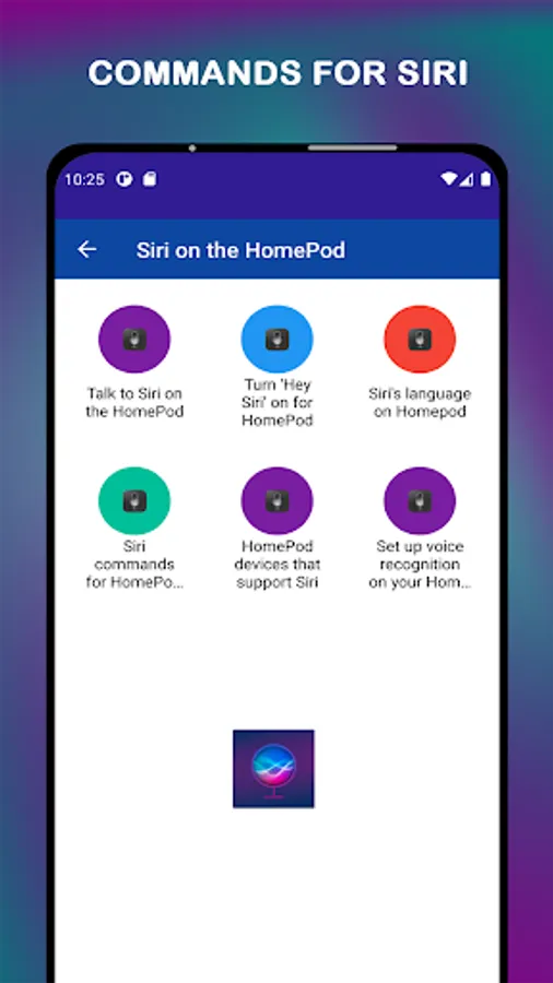 Welcome to the Siri voice commands app, the new android reference application We that provide a list of voice commands for Siri and divided them into categories: Siri commands for phone management, weather, music siri tips, alarms, contacts, Calendar,vTimer, Notes and Reminders, News, Navigation, Driving, shopping with siri, Translations, calls and messaging, Siri commands for searching and best alternatives Siri for android as alexa.