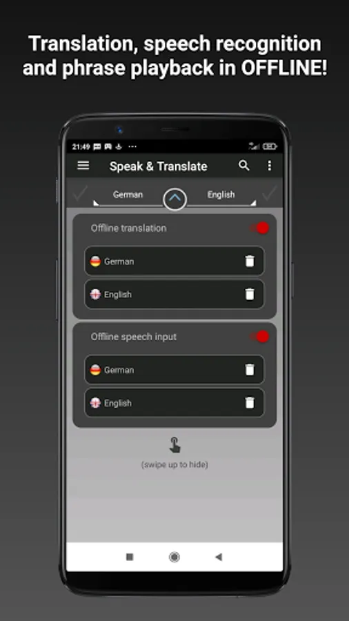 This functionality allows you to turn your device with installed app into a personal offline translator available anywhere in the world!