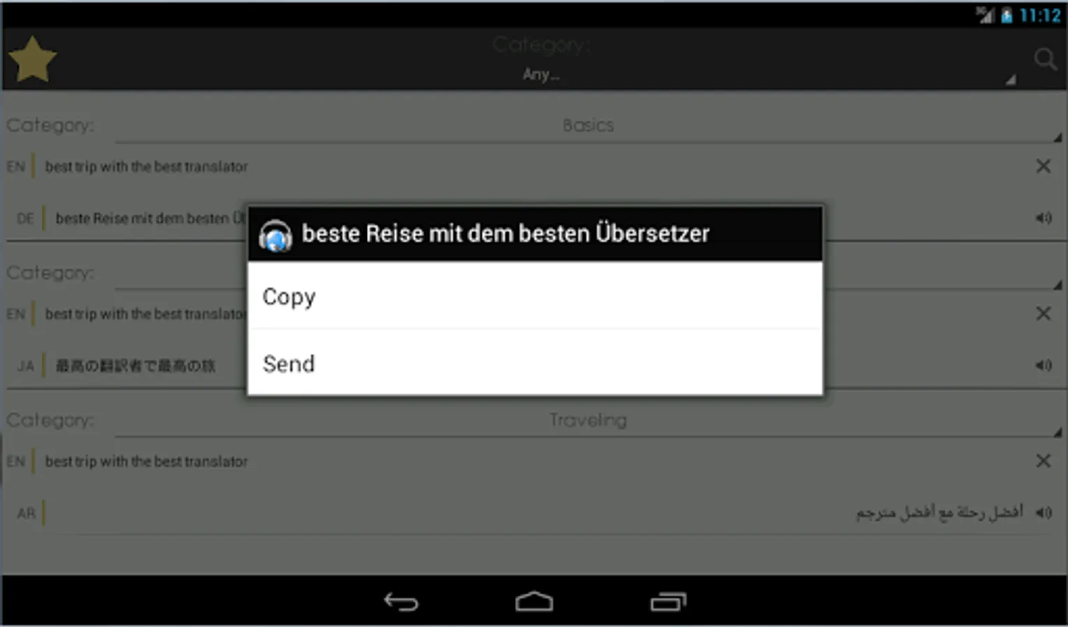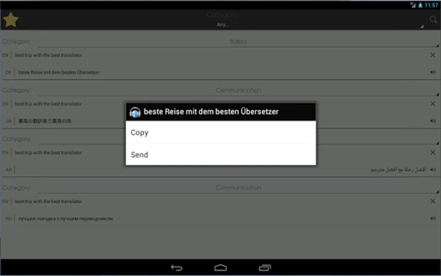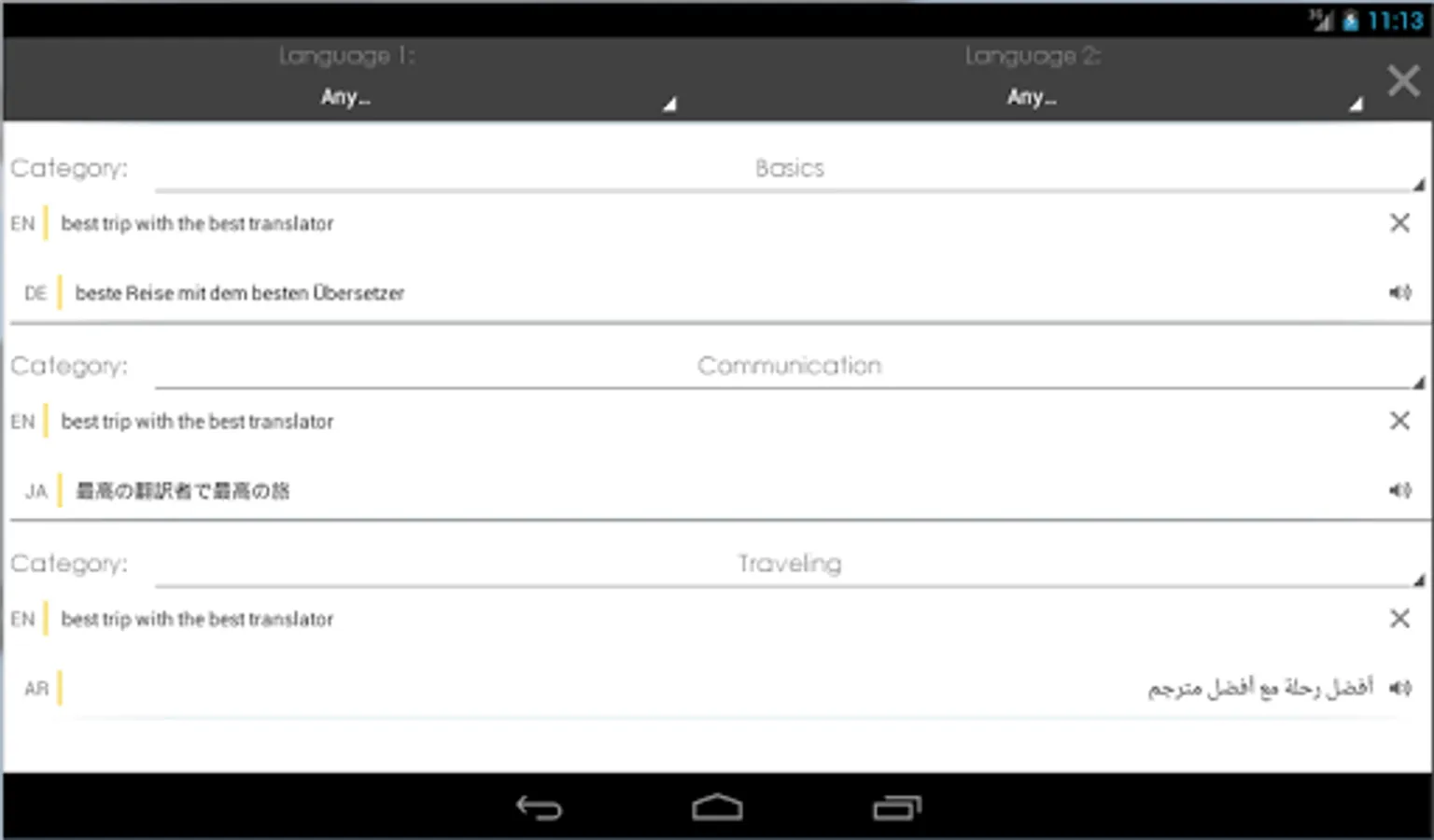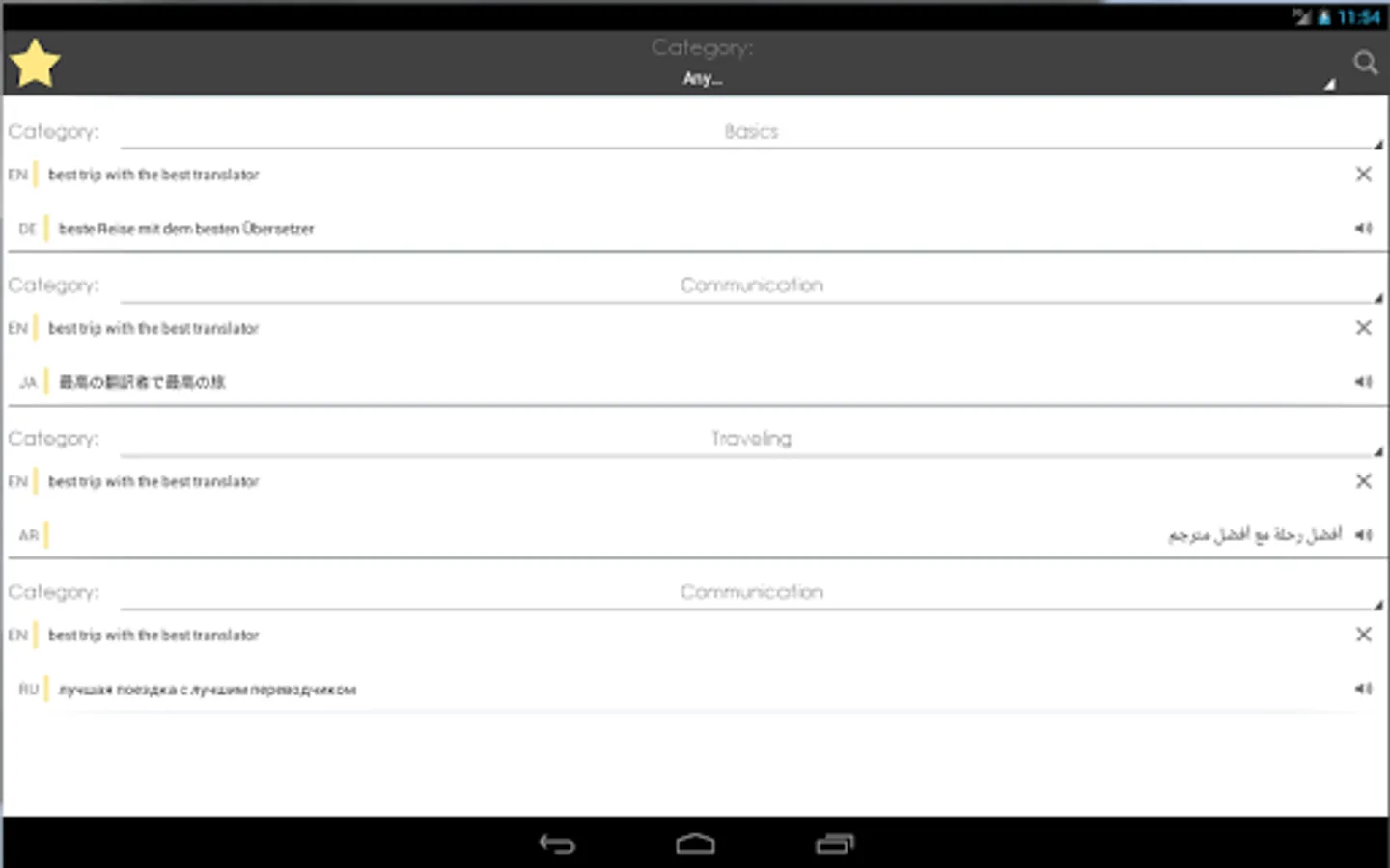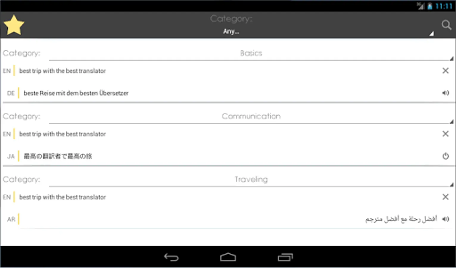 ► The possibility to sort and filter phrases in Favorites by category and language pairs