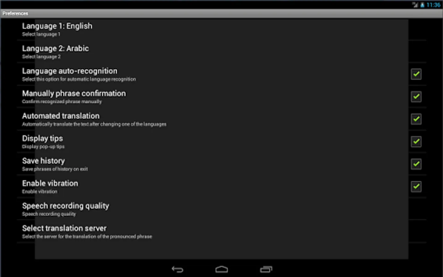 ► Use the voice translator for foreign language learning