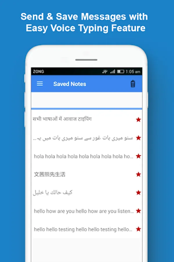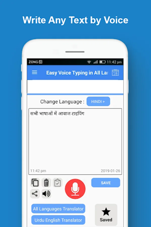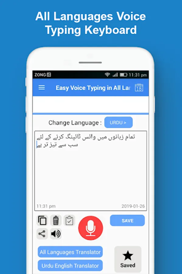 Easy all languages voice typing app allows you to type and save text by your voice in all languages of the world. With the amazing feature of this fast app, you can convert any English or other language audio or speech into text. You can also save this text as speech note entry in the saved section of this app.