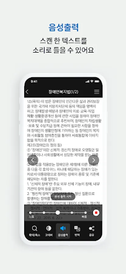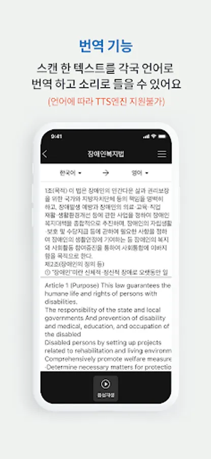 - Text can be displayed on your smartphone screen in 5 high contrast text viewing modes (colored text) and read out the text with TTS like.