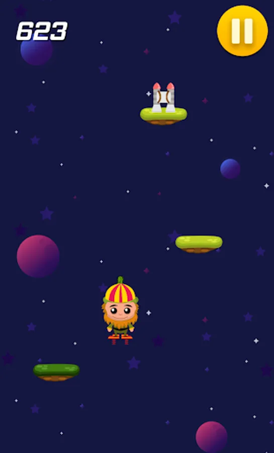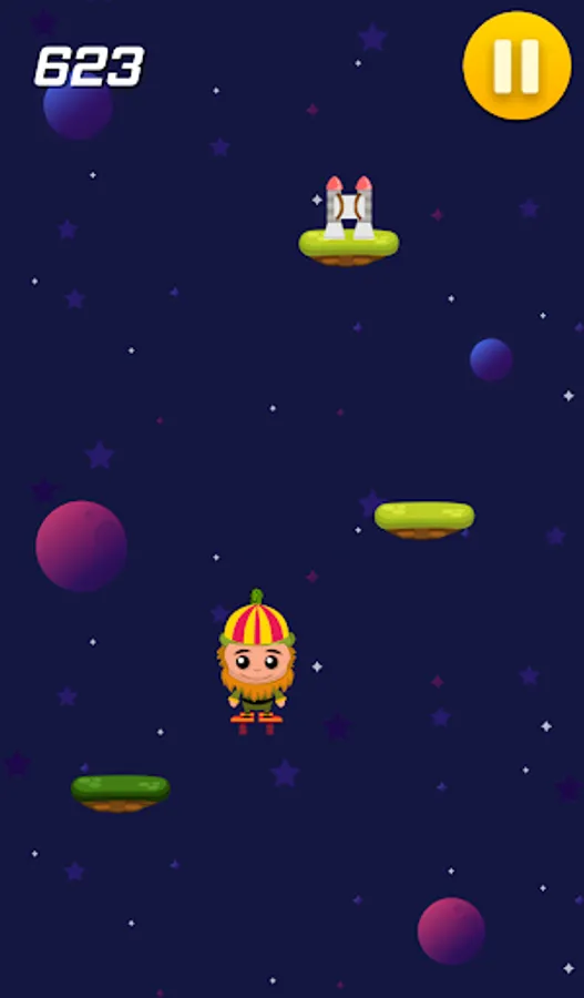 Jump on platforms with trampoline, spring boots and rocket ship to score higher.
