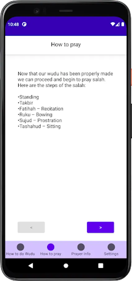 Prayer (Salah) shouldn't be difficult to perform and with this app, it isn't. Being one of the pillars of Islam, second to taking the Sahada, it is obligatory upon every Muslim to do their 5 prayers on time. So why not learn to pray properly, according what Allah has told us and what the Prophet Sallallahu Alayhi Wasallam taught us.