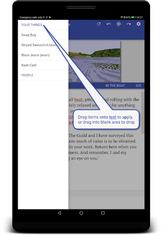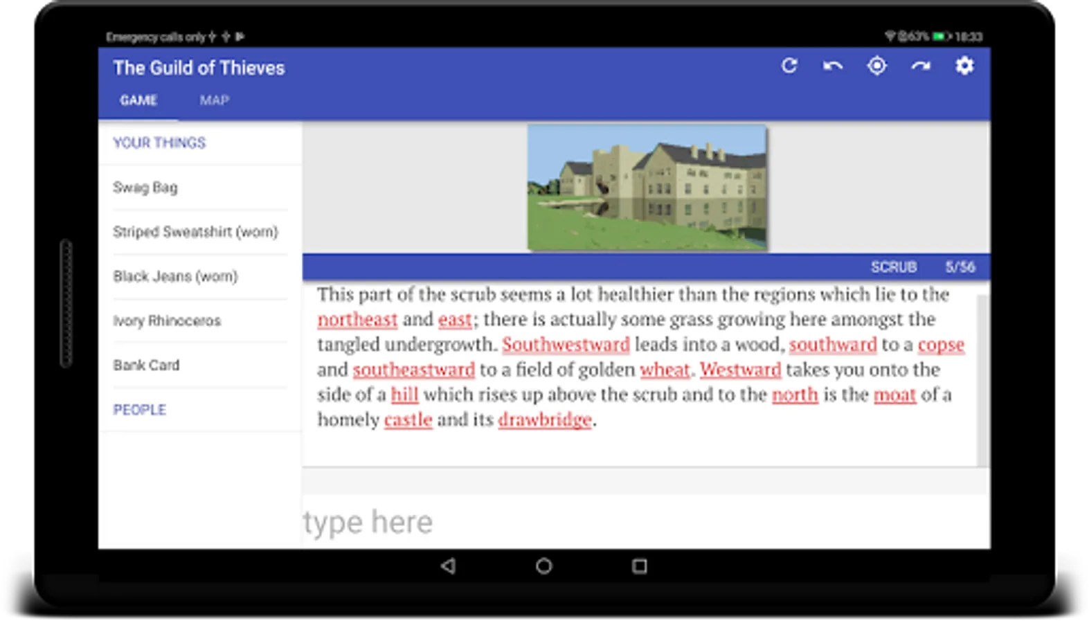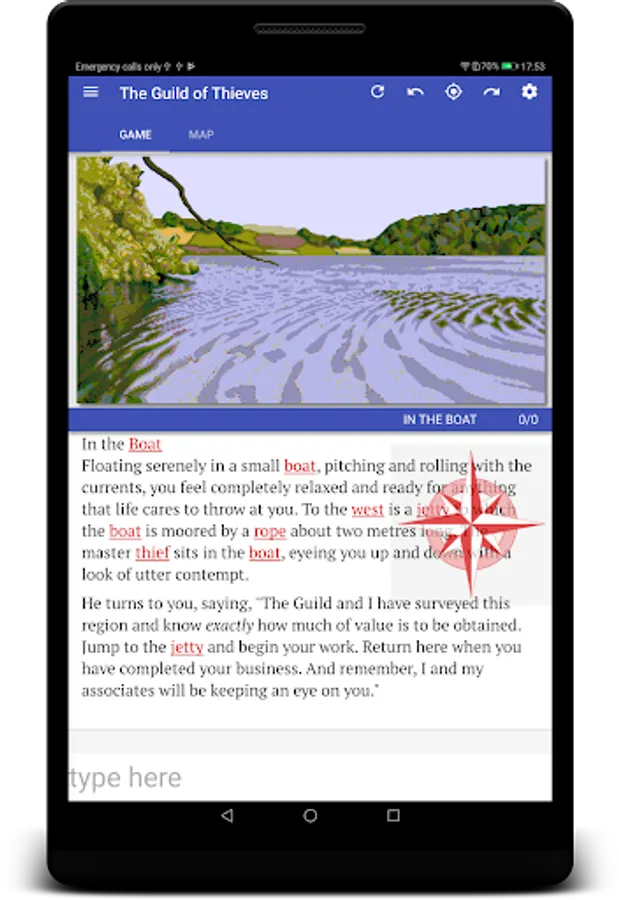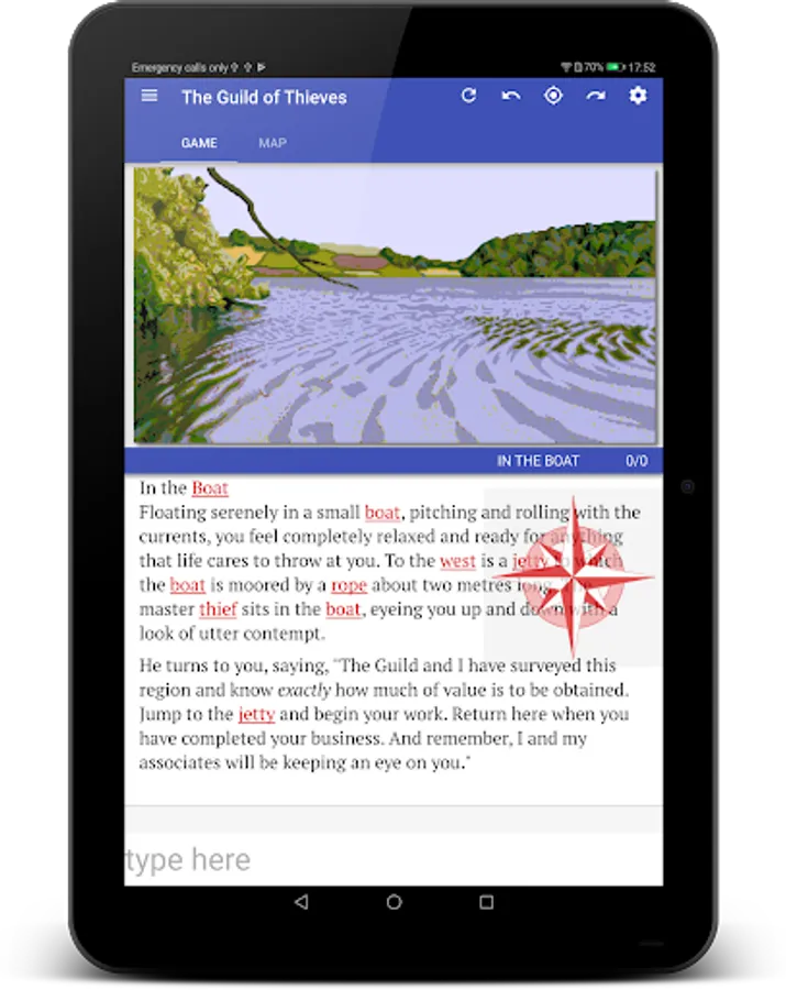 Quickly navigate with a handy compass gadget. It shows the available exits at all times, simply tap to move.