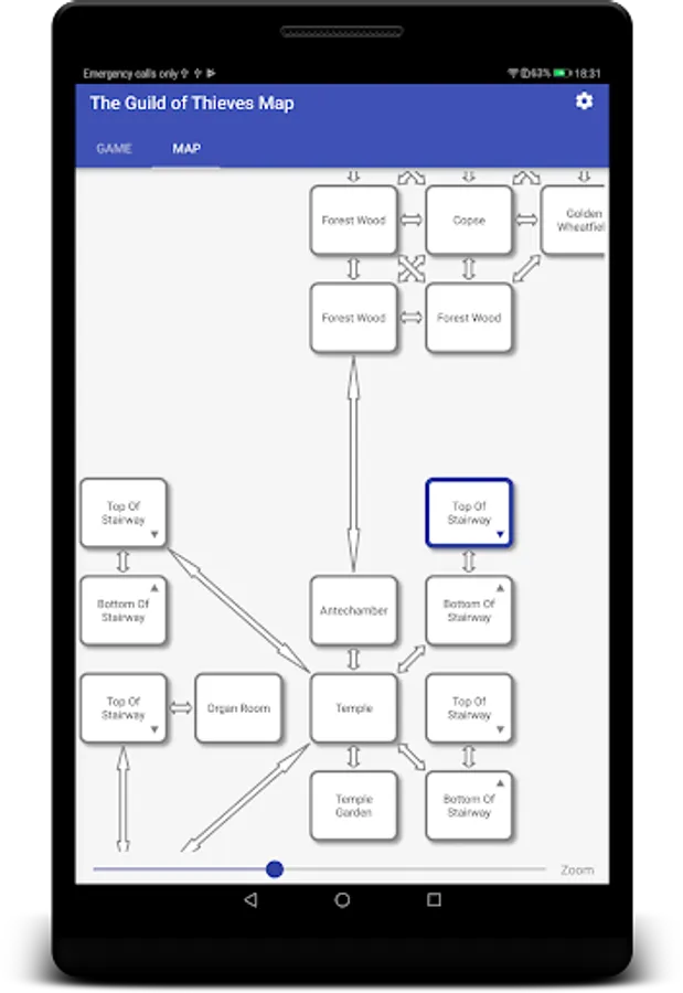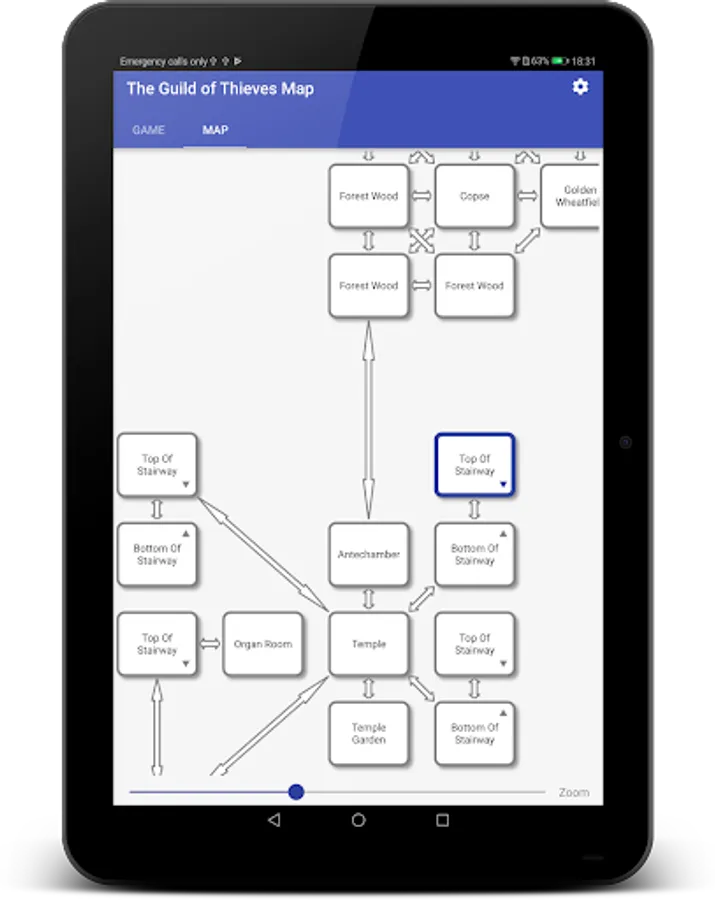 No need to draw out the map, we do it for you. As you explore the game, the map page will expand. Tap any previous room on the map to "fast-goto" that location.