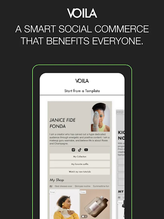 Voila is a social e-commerce platform that benefits creators, brands, and everyone else as fully as possible by making creating, earning, and buying easier than ever.