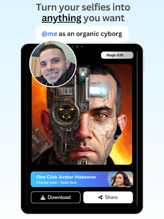 Turn your selfies into beautiful and fully customizable AI Avatars as many times as you want (UNLIMITED)! Use our pre defined AI Avatar packages or create your own custom avatars by using your own words!