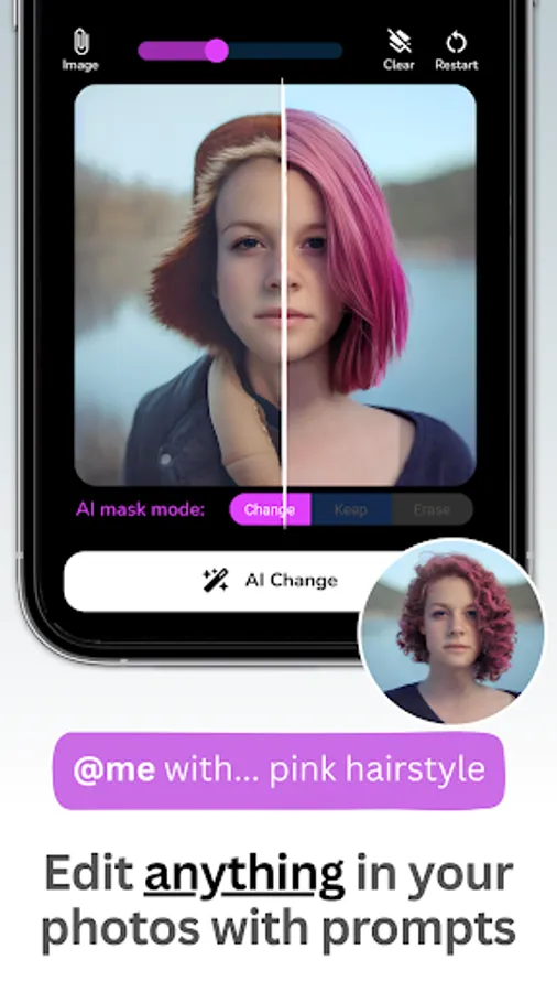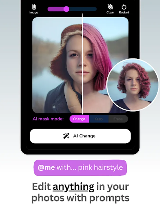Additionally, with iSee you can pick any image, mark what you want to change/add/remove in the image (change the hair, add earrings, change the food in the plate, etc...) and see the magic happens in a click of a button!