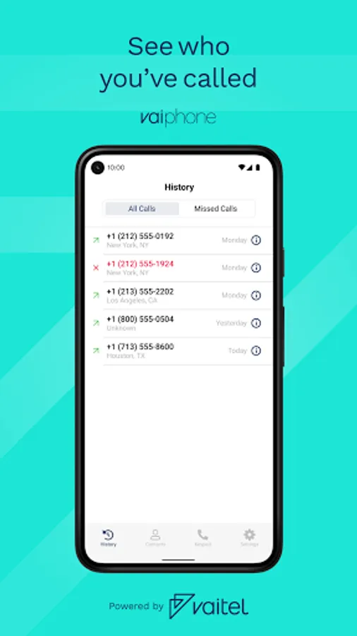 Make VoIP calls with Vai Phone, like your Auto Attendant, Music on Hold, Call Recordings, and more.