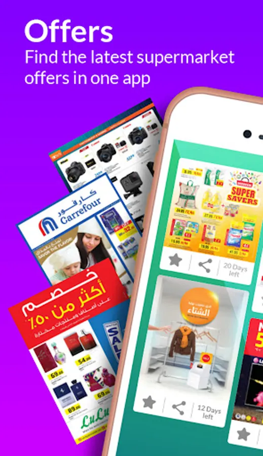Our offers app includes shopping deals from all hypermarket, supermarkets and electronics store. Browser through all brochures at your fingertips!