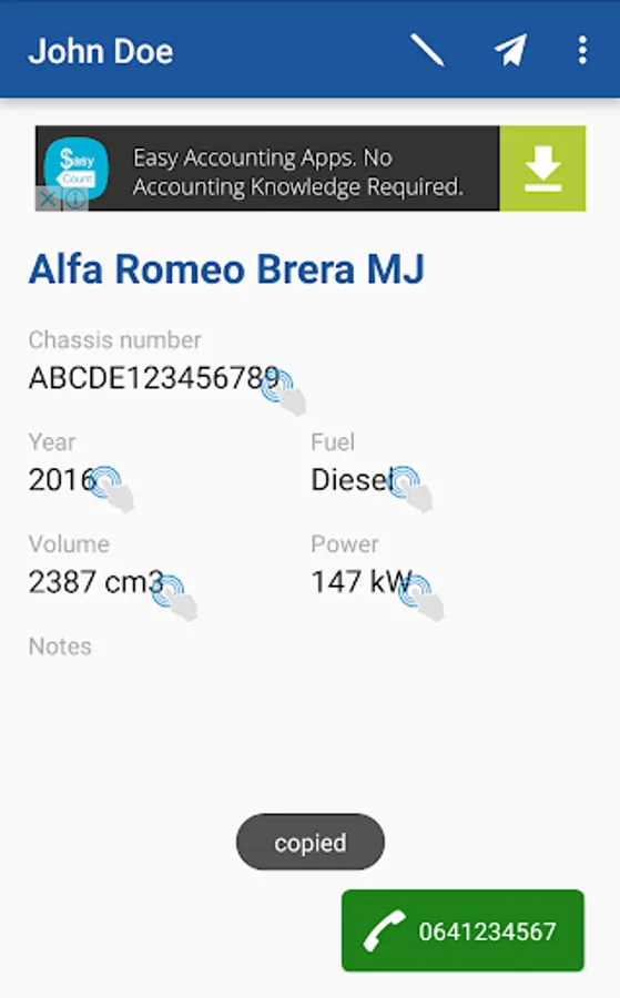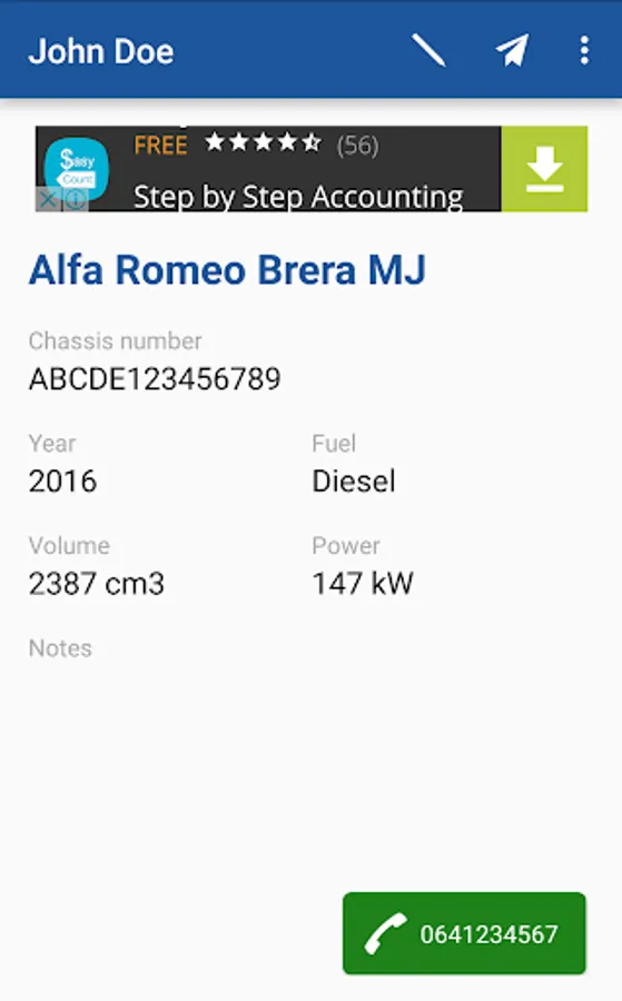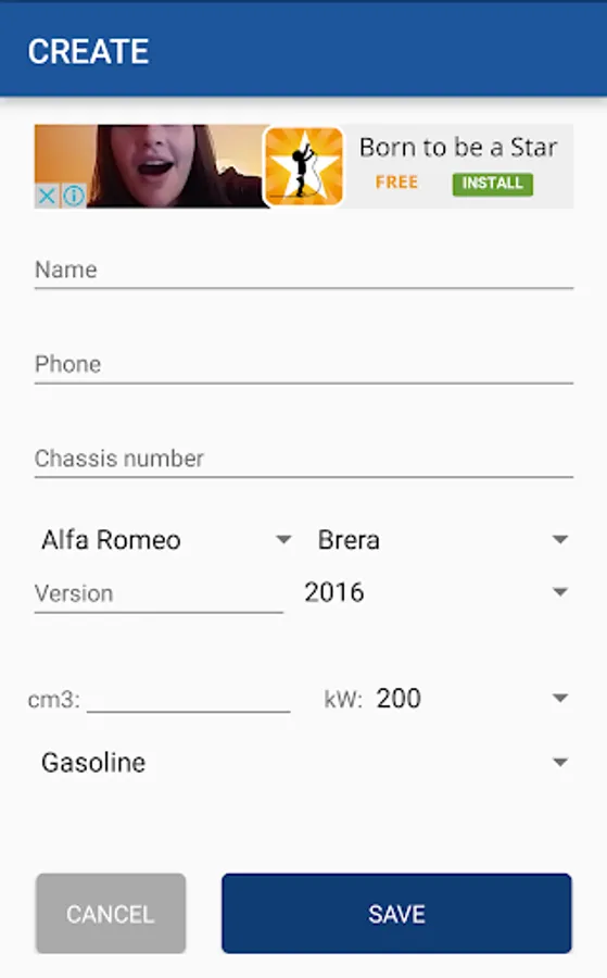 Need an application for storing customer's info like chassis number, volume, engine power etc?