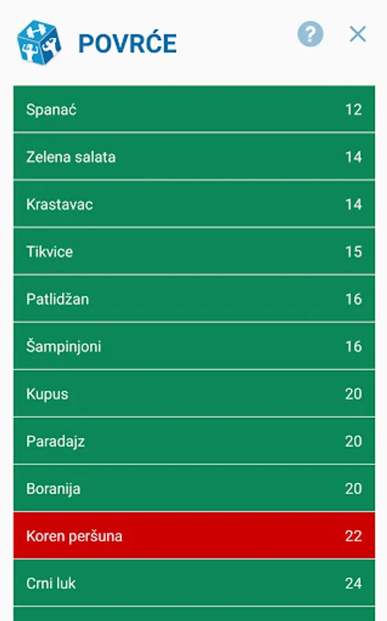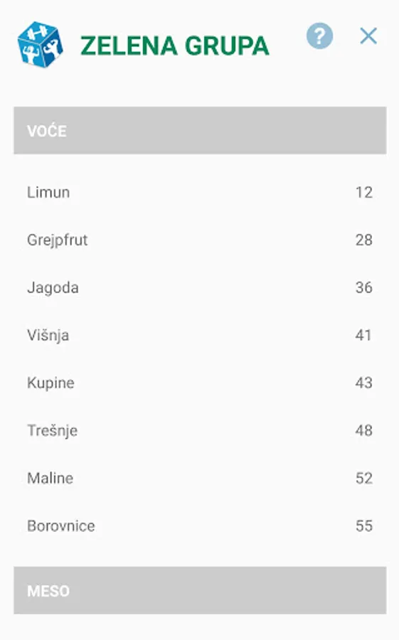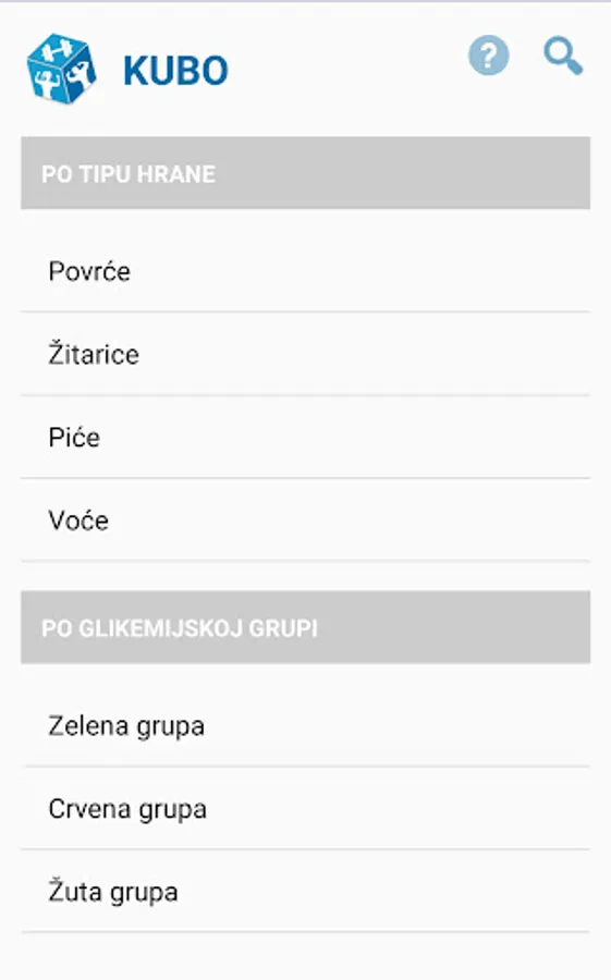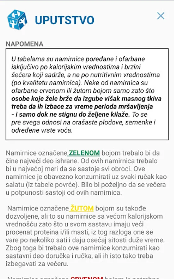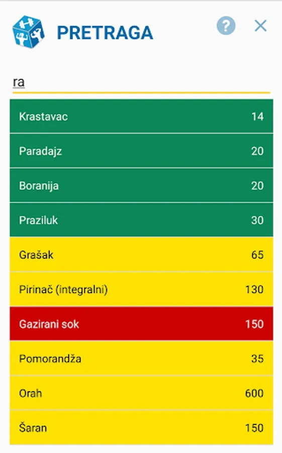 List sorted by type of food (vegetables, fruits, cereals, sweets ...) and the glycemic index (green, yellow, red).