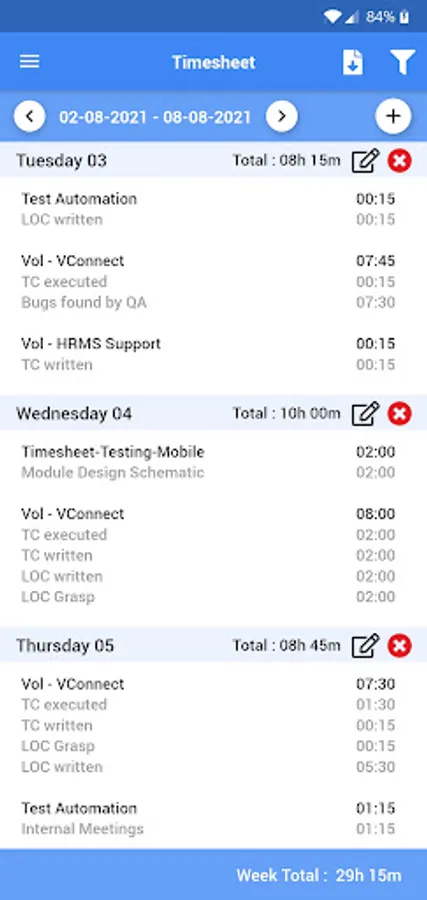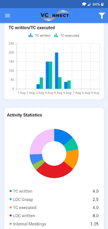 • Dashboard for user logs statistics analyse by activities logs compare to previous week so employee can self analyse their work logs